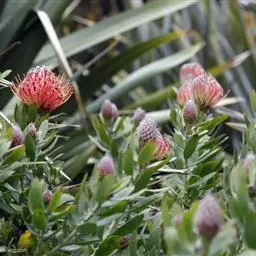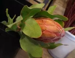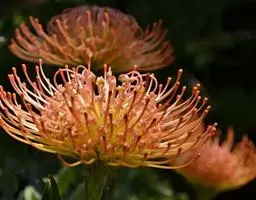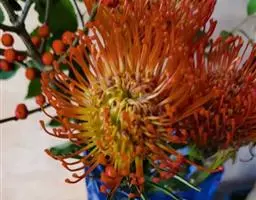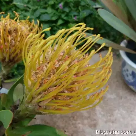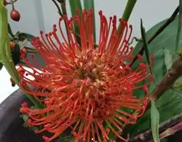帝王花,山龙眼科帝王花属多年生常绿灌木植;茎干粗壮,叶色翠绿光亮;花朵呈圆球状;其苞片有的完全打开,…