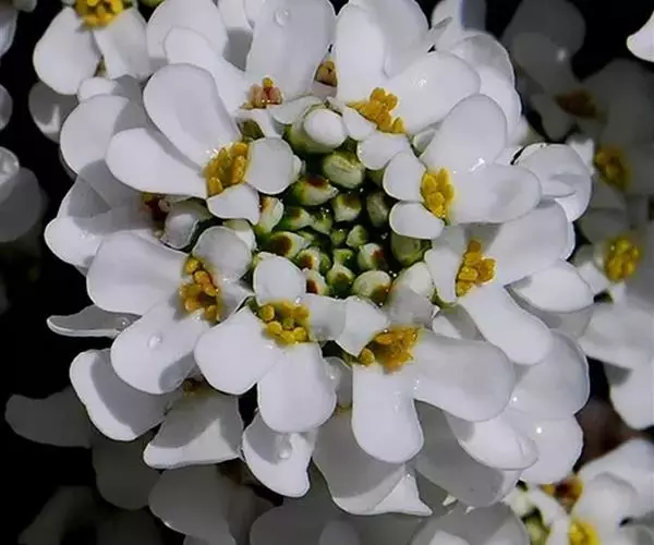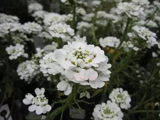 屈曲花(学名:Iberis amara L.)是十字花科,屈曲花属一年生草木植物,高可达40厘米;茎直立,稍分枝,茎下部叶匙形,上部叶片披针形或长圆状楔形,顶端圆钝,基部渐狭,总状花序顶生;花梗丝状,伸展或上升,萼片倒卵形,花瓣白色或浅紫色,倒卵形,短角果圆形,裂瓣具横纹;花柱和顶端凹缺等长或稍超出。种子宽卵形,红棕色,下部有翅。5月开花,6月结果。