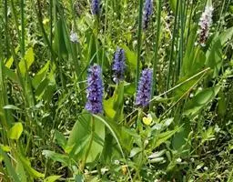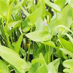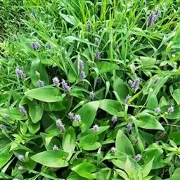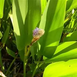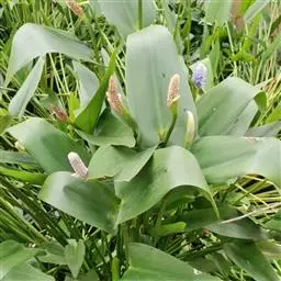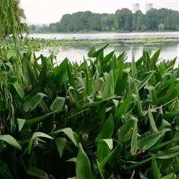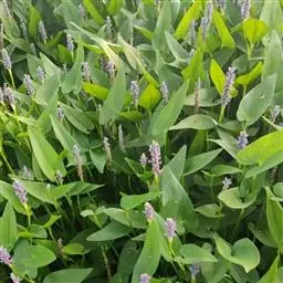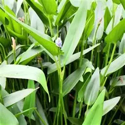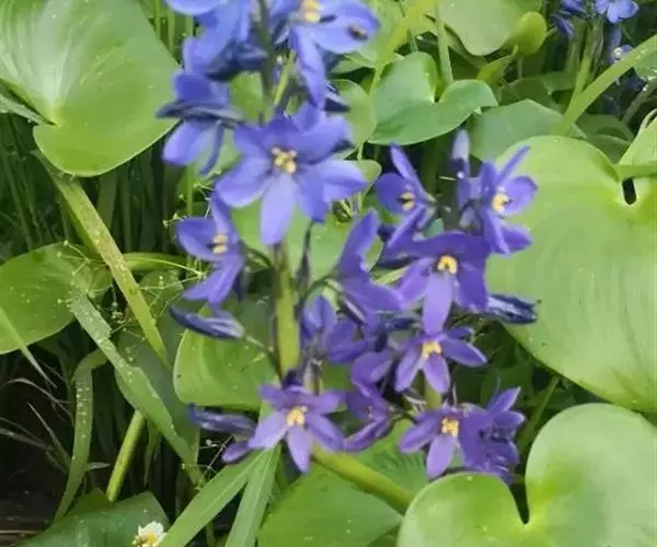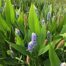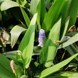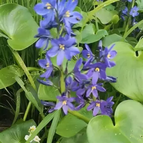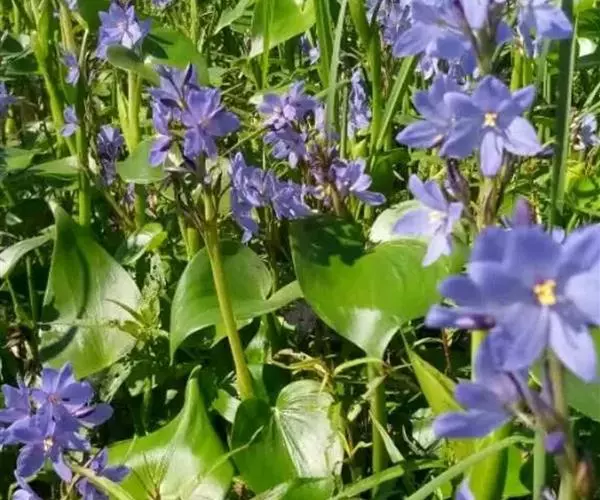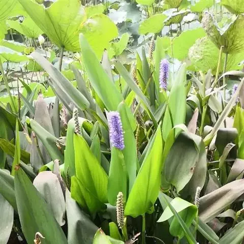 雨久花花大而美丽,淡蓝色,像只飞舞的蓝鸟,叶色翠绿、光亮、素 雅,在园林水景布置中常与其他水生观赏植物搭配使用,单独成片种植效果也好,沿着池边、水体的边缘按照园林水景的要求可作带形或方形栽种。
