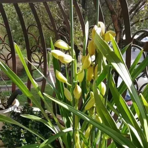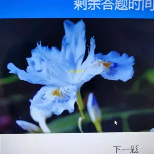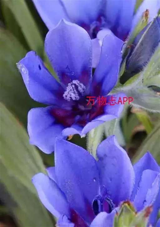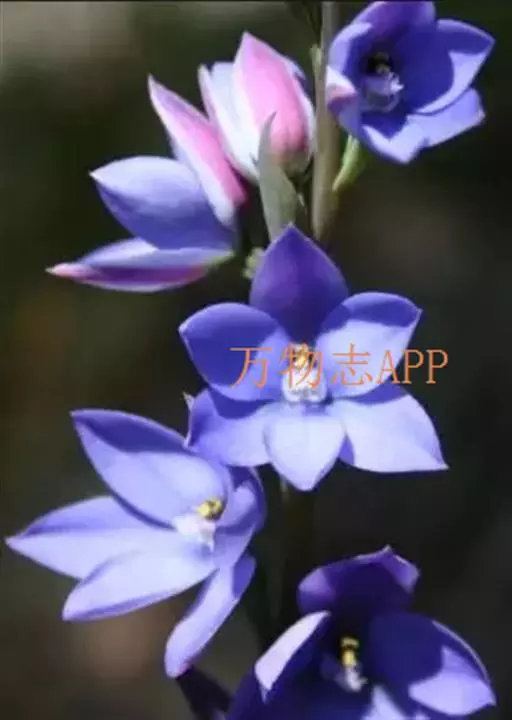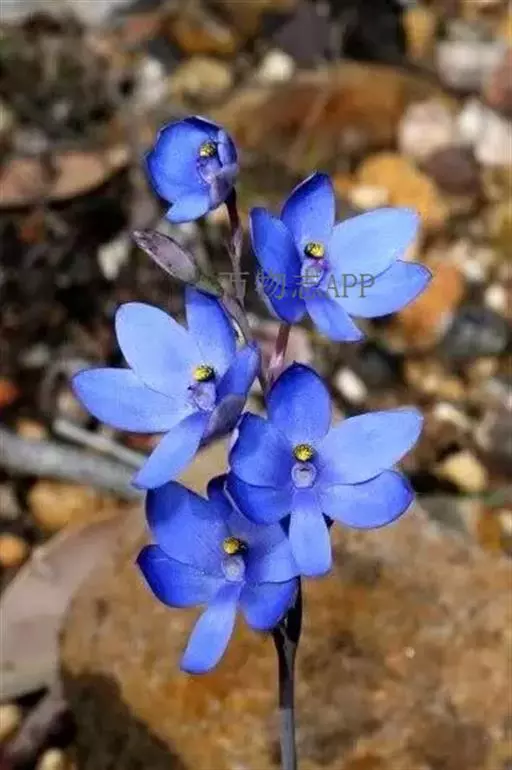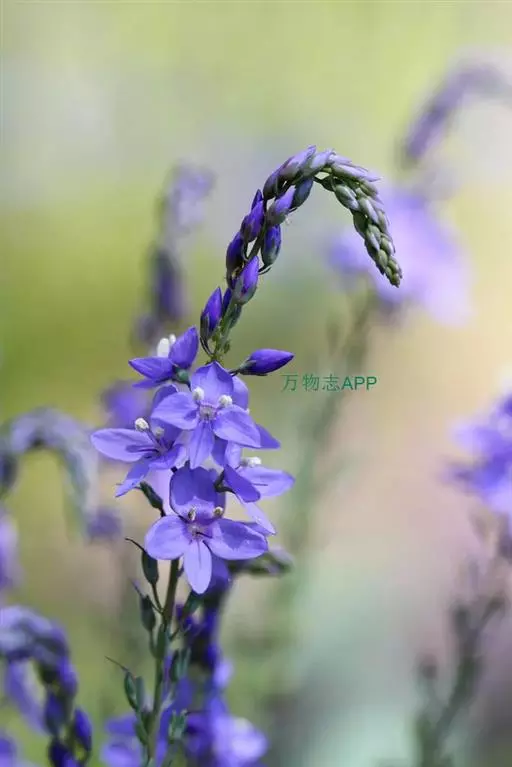 总状花序顶生,有时再聚成圆锥花序;花10余朵,具5-10毫米长的花梗;花被片椭圆形,长10-14毫米,顶端圆钝,蓝色;雄蕊6枚,其中1枚较大,花瓣长圆形,浅蓝色,其余各枚较小,花药黄色,花丝丝状。
