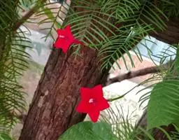 王妃藤,Ipomoea horsfalliae ,旋花科番薯属植物。常绿蔓性藤本,茎深褐色,叶互生,掌状深裂,小叶3~5枚,其中下叶片最大,长李椭圆形到披针形,革质。花腋生,花冠喇叭状,先端5裂,鲜红色。春至秋季开花。