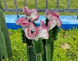 霸王鞭,是大戟科大戟属的多年生肉质灌木,全株含白色乳汁;茎直立,茎基部圆柱形,上部4~5纵棱,…
