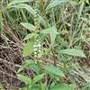 叶对生,茎下部的较小,常成圆形,上部茎叶较大,茎端的2对间距很短,密聚成轮生状,叶片卵形至卵状披针形,长3.5-11厘米,宽1-5.5厘米,先端锐尖或钝,基部楔形或近圆形,边缘具缘毛,两面均被糙伏毛,极密或有时稀疏,密布黑色腺条和腺点,侧脉纤细,不明显;叶柄长1-2.5厘米,密被柔毛。