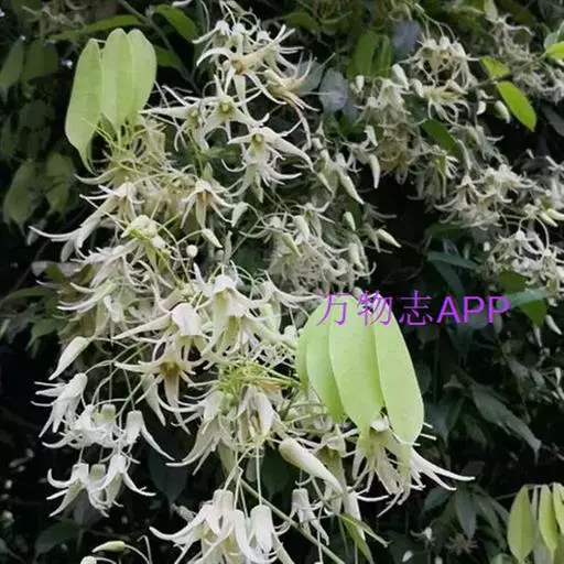 木质藤本。茎、枝和叶柄具细线纹。掌状复叶有小叶5-7片;叶柄纤细,长3-8厘米;小叶革质,倒卵形或阔匙形,长4-10厘米,宽2-4.5厘米,基部1-2片小叶较小,先端猝然收缩为一狭而弯的长尾尖,尾尖长可达小叶长的1/4(115),基部狭圆或阔楔形;侧脉每边6-9条,与网脉同于两面略凸起或有时在上面凹入;小叶柄长1-3厘米。总状花序数个簇生于叶腋,每个花序有3-5朵淡黄绿色的花。雄花:花梗长1-2厘米,外轮萼片卵状披针形,长10-12毫米,内轮萼片披针形,无花瓣;雄蕊花丝合生为管状,药室顶端具长约1毫米、锥尖的附属体;雌花未见。果长圆形或椭圆形,长4-6厘米,直径3-3.5厘米;种子三角形,压扁,基部稍呈心形,长约1厘米,宽约7毫米,种皮深褐色,有光泽。花期4月,果期6-7月。