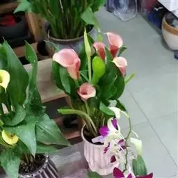 盆栽马蹄莲 繁殖以分球繁殖为主。植株进入休眠期后,剥下块茎四周的小球,另行栽植。也可播种繁殖,种子成熟后即行盆播。发芽适温20℃左右。