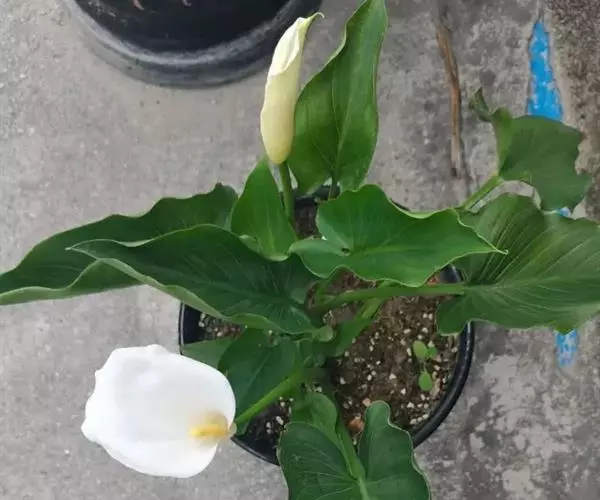 浇水施肥:马蹄莲喜湿润、肥沃土壤,即常说的“大肥大水”,生长期间要多浇水。追肥可用腐熟的豆饼水等液肥与化肥(复合肥或磷酸二铵)轮换施用,每隔2周追施一次。追施液肥时,切忌肥水浇入叶鞘内以免腐烂。以前有人提到:“见花蕾停肥”。经试验对比后,笔者认为见蕾后应增加施肥量,从而保证其花期长,花大而艳,并使花蕾不断,常年开花。