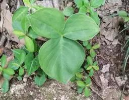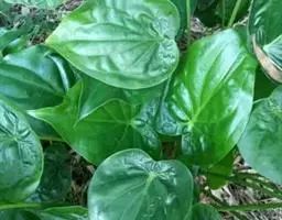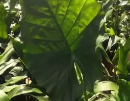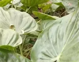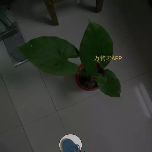 多年生粗壮草本,具块茎。叶基生,叶柄长0.4-1(-1.5)米,下部具鞘;叶片较厚,绿色,心状箭形或箭形,先端锐尖、渐尖或具尾状尖头,基部心形或戟形,全缘,长15-45厘米,宽10-25厘米,无斑块,后裂片长6-7厘米。花序柄长40-50厘米,光滑。
