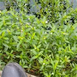 莲子草,又名:满天星、虾钳菜、膨蜞菊等,拉丁文名:Alternanthera sessilis (L.) DC. 苋科、莲子草属多年生草本,高10-45厘米;圆锥根粗,直径可达3毫米; 茎上升或匍匐,有条纹及纵沟,沟内有柔毛。叶片形状及大小有变化,条状披针形、矩圆形、倒卵形、卵状矩圆形,花药矩圆形;退化雄蕊三角状钻形,比雄蕊短,顶端渐尖,全缘;花柱极短,柱头短裂。胞果倒心形,深棕色,包在宿存花被片内。种子卵球形。花期5-7月,果期7-9月。全植物入药,嫩叶作为野菜食用,又可作饲料。