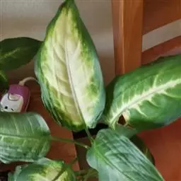 彩叶万年青(学名:Dieffenbachia sequina (L.) Schott)是天南星科、花叶万年青属较矮小亚灌木。茎粗壮,上升,上部直立。叶柄具鞘,绿色,具白色条状斑纹;叶片长圆形至卵状长圆形,中肋宽厚,侧脉表面下凹,花序柄短。佛焰苞骤尖,绿色或白绿色。肉穗花序短于佛焰苞,雄花序几紧接,柱头近圆锥形,浆果橙黄绿色。
