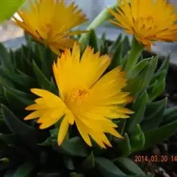 番杏科菱鲛属植物。产于南非开普省。小型的多年生肉质草本。有肉质根,几乎无茎。叶8一10,近似匙 唐扇 形,先端钝圆的三角形,肉质比叶下部明显厚,蓝绿色。叶总的来说很小,排列成松散的莲座形。植株丛生,具肥大的肉质根,无茎。叶8~10枚直接从根基部长出,排列成松散的莲座状,叶肉质,很小,近似匙形,先端为浑圆的三角形,叶蓝绿或褐绿色,密布深色舌苔状小疣突。花朵直径1~2厘米,花色黄、红相间,有丝绸般的光泽。花期春末夏初,通常在阳光充足的午后开放,傍晚闭合,第二天照旧开放、闭合,如此昼开夜闭,单朵花可持续开放3~5天。