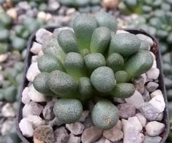 本种小巧玲珑,叶的大小和排列都酷似番杏科著名种类天女,但比天女栽培容易。是一种易于普及的番杏科多肉植物,家庭栽培非常适宜。