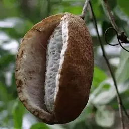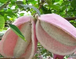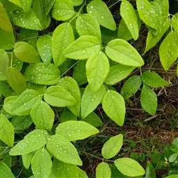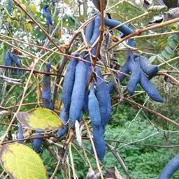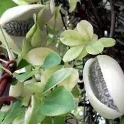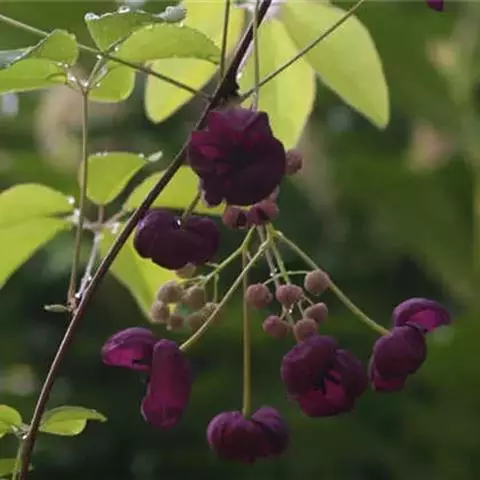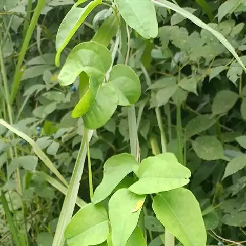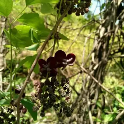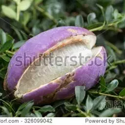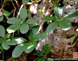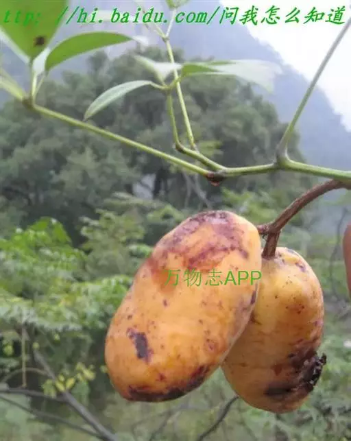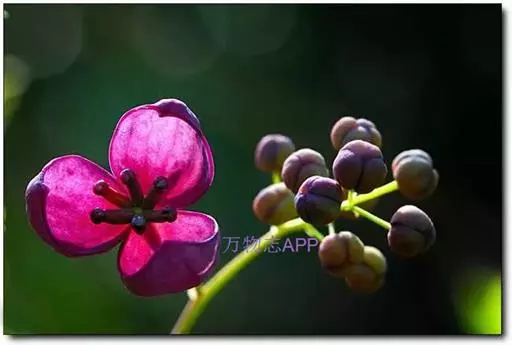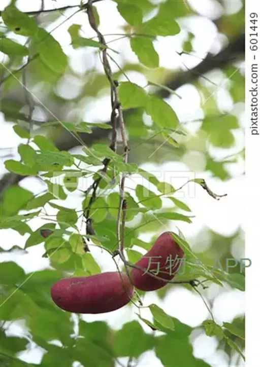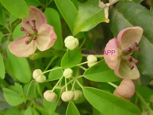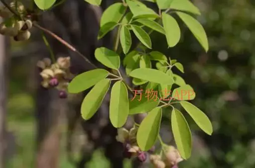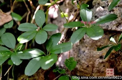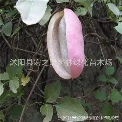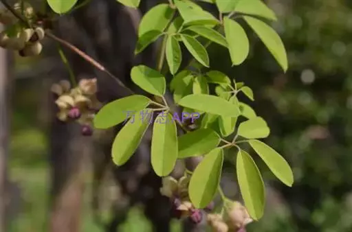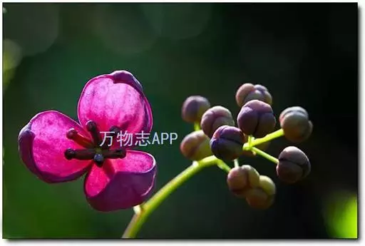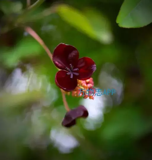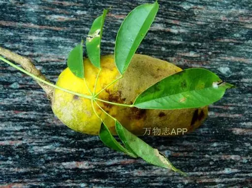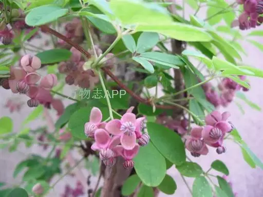 植物五叶木通,别名木通《中国植物志》。落叶木质缠绕藤本,长3~15米,全体无毛。幼枝灰绿色,有纵纹。掌状复叶,簇生于短枝顶端;叶柄细长。夏季开紫色花,短总状花序腋生。果肉质,浆果状,长椭圆形,略呈肾形,两端圆,长约8厘米,直径2~3厘米,熟后紫色,柔软,沿腹缝线开裂。种子多数,长卵形而稍扁,黑色或黑褐色。