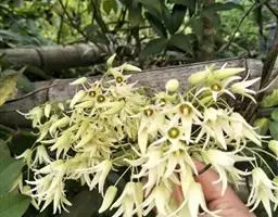 药材性状:茎藤圆柱形而扭曲,长30-60厘米,直径0.5-1厘米。表面灰棕色,粗糙,有浅纵沟纹及裂纹,皮孔圆形或横向长圆形,突起,并有枝痕。质坚脆,较易折断,断面不整齐,皮部薄,黄棕色,易剥离,木部黄白色,有放射状纹理,中央髓圆形。气微,味苦、涩。