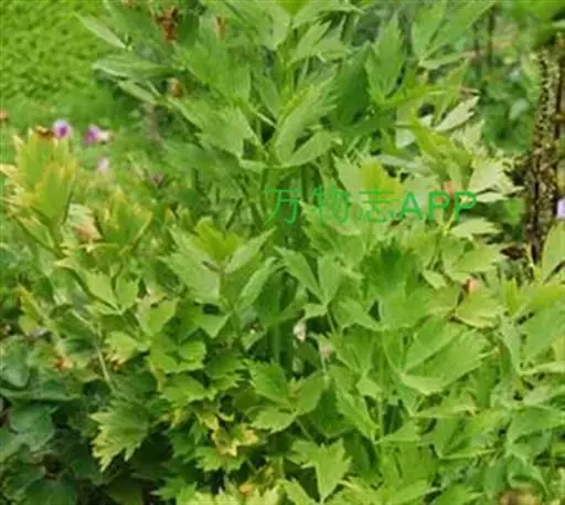 欧当归(学名:Levisticum officinale Koch.)是伞形科 、欧当归属多年生草本植物,全株有香气,高可达2.5米。根茎肥大,径有多数支根,顶部有多数叶鞘残基。茎直立,光滑无毛,基生叶和茎下部叶二至三回羽状分裂,有长柄,叶柄带紫红色的叶鞘;叶片轮廓为宽倒卵形至宽三角形,茎生叶叶柄较短,复伞形花序,总苞片,小总苞片均为宽披针形至线状披针形,边缘白色,膜质,小伞形花序近圆球形,花黄绿色,萼齿不明显,花瓣椭圆形,花柱基短圆锥状。分生果椭圆形,黄褐色,背部稍扁压,6-8月开花,8-9月结果。