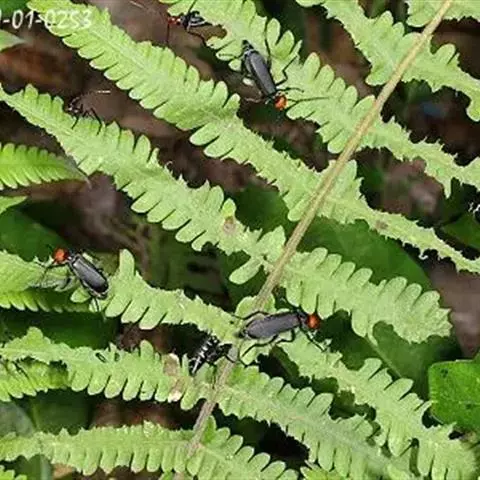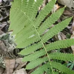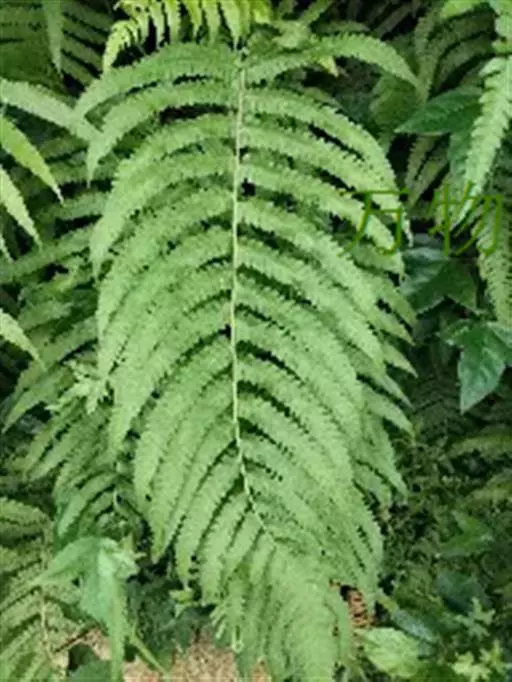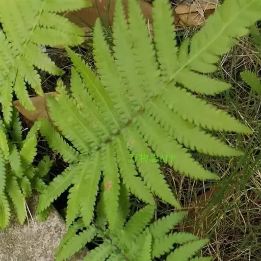 毛蕨 植株高达130厘米。根状茎横走,粗约5毫米,黑色,连同叶柄基部偶有一二卵状披针形鳞片。叶近生;叶柄长约70厘米,粗2~3毫米,基部黑褐色,向上渐变为禾秆色,几光滑;叶片长约60厘米,宽20~25厘米,卵状披针形或长圆披针形,先端渐尖,并具羽裂尾头,基部不变狭,二回羽裂;羽片22~25对,顶生羽片长约5厘米,基部宽约1.8厘米,三角状披针形,渐尖头,基部阔楔形,柄长约5毫米,羽裂达2/3,侧生中部羽片几无柄,斜向上,互生(基部的对生),相距约2厘米,近线状披针形,先端渐尖,基部楔形,对称,羽裂达1/3;裂片约30对,斜展,长宽各约3~4毫米,三角形,尖头。叶脉下面明显,每裂片有侧脉8~10对,基部一对斜展,其上侧一脉出自主脉基部,下侧一脉出自羽轴,二者先端交结成一个钝三角形网眼,并自交结点向缺刻下的膜质联线伸出外行小脉;第二对侧脉斜伸到膜质联线,在主脉两侧形成两个斜长方形网眼;第三对侧脉伸达缺刻以上的叶边。叶近革质,干后褐绿色,上面光滑,下面沿各脉疏生柔毛及少数橙红色小腺体,并沿羽轴有一二淡棕色鳞片;鳞片膜质,阔卵形,有缘毛。孢子囊群圆形,生于侧脉中部,每裂片5~9对,下部1~2对不育,因此在羽轴两侧各形成一条不育带;囊群盖小,膜质,淡棕色,上面疏被白色柔毛,宿存,成熟时隐没于囊群中。染色体2n=72,144。
