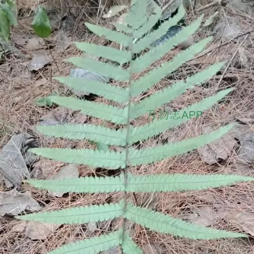 毛蕨,植株高达1米以上。根状茎长而横走,有褐色茸毛。叶远生,近革质,下面密生灰白或淡棕色毛;叶片阔三角形或卵状三角形,长30~80厘米,宽30~50厘米,三回羽裂;末回裂片基部彼此相连或分离,镰状披针形,钝尖头,全缘或偶有下部的为浅裂或呈波状圆齿。孢子囊群生小脉顶端的联结脉上,沿叶缘分布;囊群盖条形,并有由变质的叶缘反折而成的假盖。 分布于陕西(秦岭南坡)、湖北、四川、云南、贵州、广西、广东、台湾和西藏(亚东);亚洲热带其他地区也有。生阳坡或疏林下,海拔570~3000米。用途同蕨;其根状茎所含的淀粉质量比蕨要好。