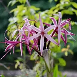 水鬼蕉叶姿健美,花期6-7月,花白色,花朵一般比较大,花瓣厚而覆盖着蜡质,一般为黄绿色到黄色,并分布着一些褐色或紫褐色的斑点。花瓣一般是细长的,且分的很开,酷似蜘蛛的长腿,而花朵中间的部分则可被看作是蜘蛛的身体。在顶端多会有向下的弯曲。适合盆栽观赏。温暖地区,可用于庭院布置或花境、花坛用材。