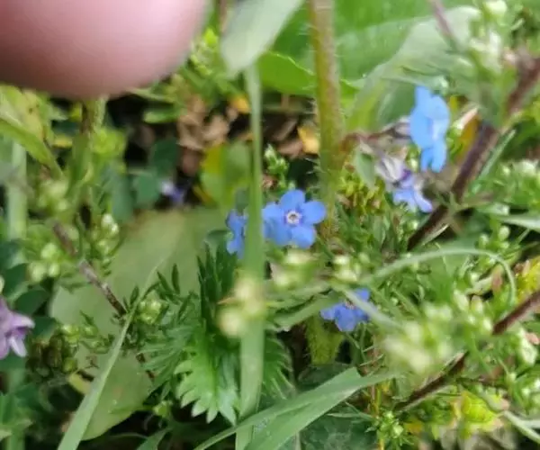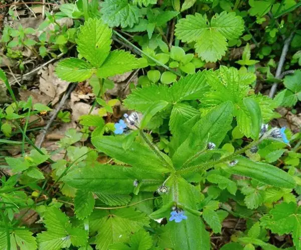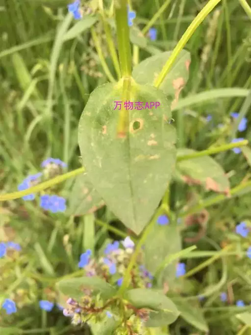 基生叶和茎下部叶具长柄,卵形、狭卵形至宽披针形,长4-12厘米,宽0.7-4.4厘米,顶端急尖、渐尖,稀钝,基部圆形或宽楔形,中部以上叶渐变小,具短柄至无柄,狭卵形或宽披针形,基部渐狭,边缘 微孔草 全缘,两面有短伏毛,下面沿中脉有刚毛,上面还散生带基盘的刚毛。