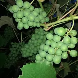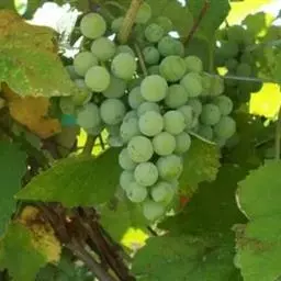 此外,市上还可见到的有“维多利亚”和“奥古斯特”两个欧洲种葡萄。前者青黄色,后者金黄色。果实硬度大,含糖18度以上,味甜,质好,不易落粒,抗病,丰产,7月中、下旬成熟。