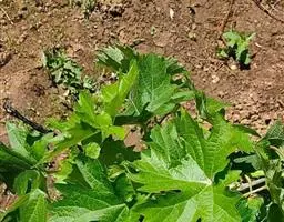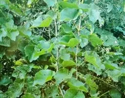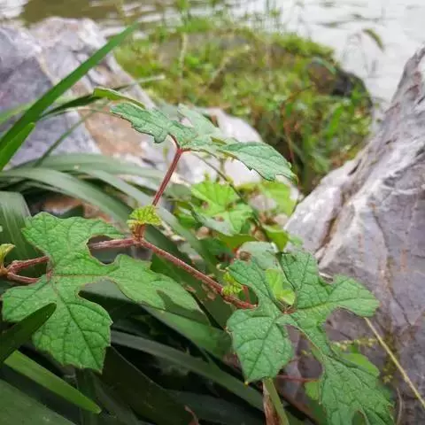 茎粗壮,植株无毛或幼枝被短柔毛。单叶互生;叶柄长4-5cm,向上逐渐变短;叶片纸质,心状卵形或心形,长与 宽约3.5-8cm,先端渐尖,基部近心形或平截,边缘具小尖头的圆齿, 提子 不分裂或不明显3浅裂,上面无毛,下面浅绿色,脉上稍被短柔毛;基出脉3条,侧生的一对常分歧,如5基出脉。