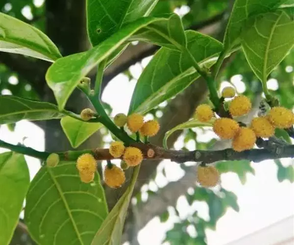雄花序头状,倒卵圆形至长圆形,长2.5-12毫米,直径2.7-7毫米,雄花花被片2-4裂,基部联合,长0.5-0.7毫米,雄蕊1枚;雌花序近头状,雌花花被管状,花柱伸出苞片外。聚花果近球形,表面粗糙被毛,直径约5厘米,成熟红色,肉质,干时褐色,苞片宿存;小核果10-15颗。总花梗长1.5-5毫米。花期4-5月。