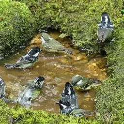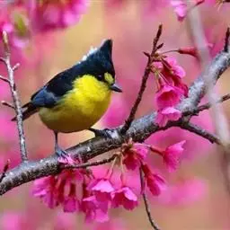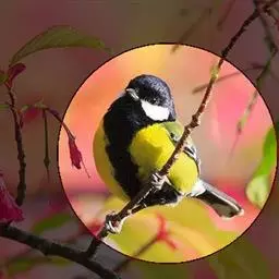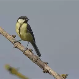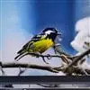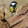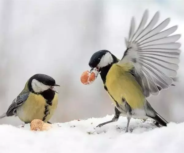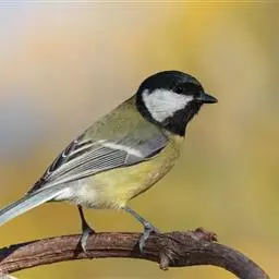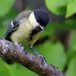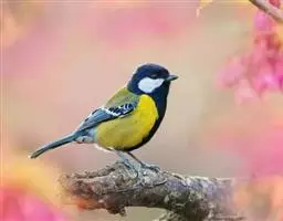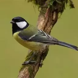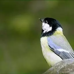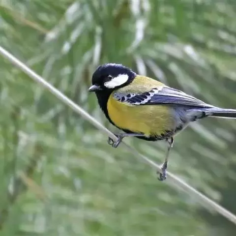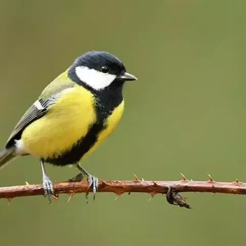 大山雀,英文名parus major,民间又叫“白脸山雀”、“吱吱嘿”、“吱啵”等。属鸟纲、雀形目、山雀科,体型与麻雀相似。头黑色,两侧具大形白斑;上体蓝灰,背沾绿色;腹面白色,中央贯以显著的黑色纵纹。鸣声的基调似“呼伯、呼伯”或“呼黑、呼黑”,易与其它鸟类区别。为林栖鸟类,通常栖息在山区阔叶林或针叶林间,夏季可见于海拔3000米左右的高山,冬时降至平原地带的林间,在耕作区或庭园中亦能经常见到是一种极常见到。
