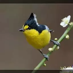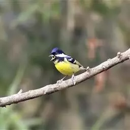 黄颊山雀是雀形目山雀科山雀属鸟类。雄鸟额、头顶和羽冠为具有光泽的黑色;额基、眼先、眉纹、脸颊和耳羽等头颈侧为鲜艳的明黄色;贯眼纹黑色;后颈亦具一黄斑;上体灰黄绿色,羽缘黑色;尾羽黑色具蓝灰色羽缘,基部白色;下体颏、喉至上胸为富有金属光泽的黑色;胸下有一黑色宽中央纵纹,一直延伸至肛周;其余下体白色;胸侧和两胁染黄色或蓝灰色;虹膜暗褐色;喙黑色;脚铅蓝灰色至铅黑色。雌鸟似雄鸟,但上体光泽较弱,胸腹部黑色纵带不明显。黄颊山雀分布于亚洲东南部地区,在中国分布于华中、华南和西南等地。栖息于中低山常绿阔叶林、针叶林和混交林中,也见于山麓疏林灌丛草坡或茶园、果园等地。常成对或小群活动,也和大山雀等其他小型鸟类混群,活跃地在乔灌木枝叶间飞翔跳跃。主食鳞翅目和鞘翅目等昆虫,兼食植物种实。繁殖期在4-6月,营巢于树洞、岩隙或墙缝中。窝卵数为3-7枚,卵灰白色且有红褐斑,雏鸟晚成。黄颊山雀被列入中国林业局200