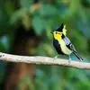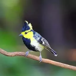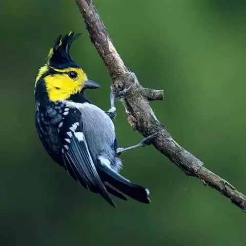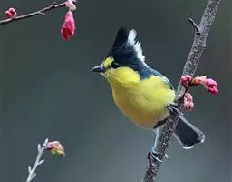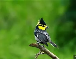 台湾黄山雀体长约13厘米。头顶至后颈黑色,有一长的黑色羽冠,羽冠末端和后颈中央白色。背苍绿色,…