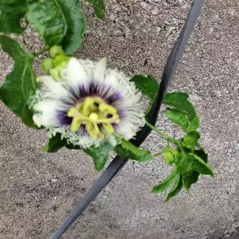聚伞花序退化仅存1花,与卷须对生。花白色或淡紫色,具白斑,直径约2-3厘米;苞片3枚,一至三回羽状分裂,裂片丝状,顶端具腺毛;萼片5枚,长1.5厘米,外面近顶端具1角状附属器;花瓣5枚,与萼片等长;外副花冠裂片3-5轮,丝状,外2轮裂片长4-5毫米,内3轮裂片长约2.5毫米;内副花冠非褶状,膜质,高1-1.5毫米;具花盘,杯状,高约1-2毫米;雌雄蕊柄长5-7毫米;雄蕊5枚,花丝基部合生,扁平;花药长圆形,长约4毫米;子房椭圆球形,长约6毫米,具短柄,被稀疏腺毛或无毛;花柱3(-4)枚,长5-6毫米,柱头头状。
