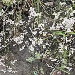 深波叶补血草(Limonium sinense (Girard) Kuntze),又名补血草,海赤芍、鲂仔草、白花玉钱香、海菠菜、海蔓。多年生草本,高15-60厘米,花期在北方7(上旬)-11(中旬)月,在南方4-12月。补血草分布于我国滨海各省区和越南,生于沿海潮湿盐土或砂土上。根或全草入药,有收敛、止血、利水的作用。