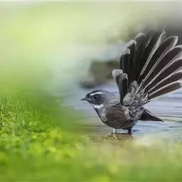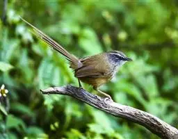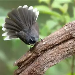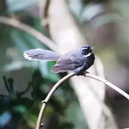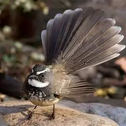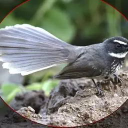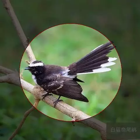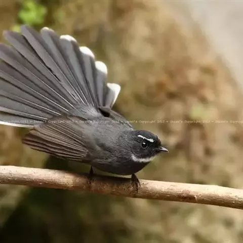 白眉扇尾鹟:体长17厘米,是一种中等体型的灰色扇尾鹟。色彩独特。宽宽的眉纹及前额白色,尾有白色宽边…