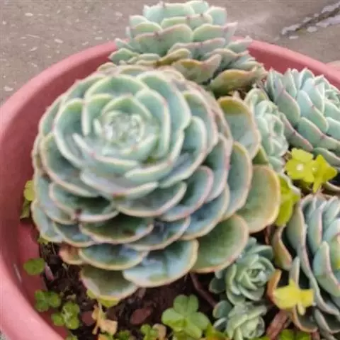 奥普琳娜 x Graptoveria ‘Opalina’ 为风车石莲属(Graptoveria )多肉植物,肉质叶互生,呈莲花状排列,整体颜色呈现粉粉的淡蓝色,叶缘和尖端容易泛红,非常漂亮,颇有古代美人的娇羞感。