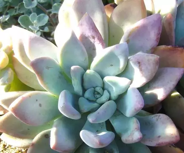 蓝石莲是景天科、拟石莲花属的多肉植物。茎部粗壮,成熟植株茎部木质化。叶片莲座型密集排列,株径不会很大,…