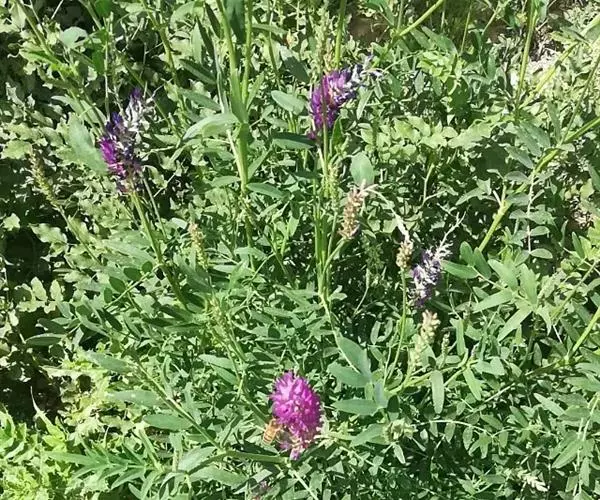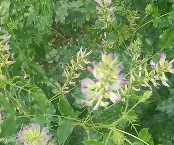 多年生草本,高50-100厘米。主根肥厚,木质,常分枝,灰白色。茎直立,上部多分枝,有细棱,被白色柔毛。羽状复叶有13-27片小叶,长5-10厘米;叶柄长0.5-1厘米;托叶离生,卵形,披针形或线状披针形,长4-10毫米,下面被白色柔毛或近无毛;小叶椭圆形或长圆状卵形,长7-30毫米,宽3-12毫米,先端钝圆或微凹,具小尖头或不明显,基部圆形,上面绿色,近无毛,下面被伏贴白色柔毛。