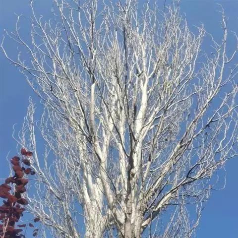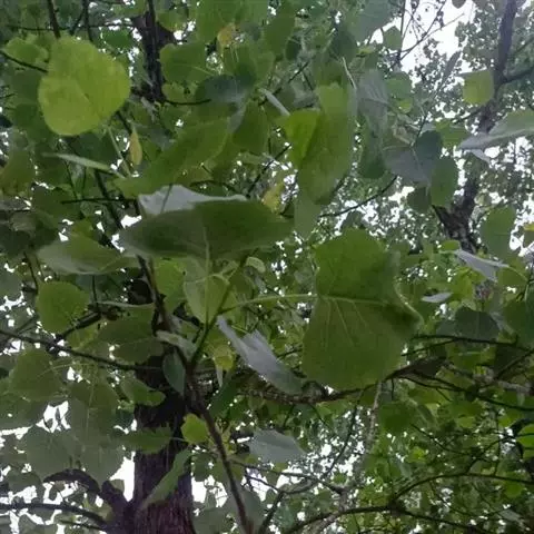 黑杨,为乔木,高30米;树冠阔椭圆形。树皮暗灰色,老时沟裂。小枝圆形,淡黄色,无毛。芽长卵形,富粘质,…