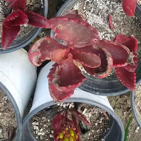 病、虫害及其防治:伽蓝菜属植物常见的虫害为根粉蚧、红蜘蛛和夜蛾类幼虫。根粉蚧主要为害幼苗根部,严重时导致植株萎缩死亡,可用 3%呋喃丹粉剂或 40%乐果乳油 2000 倍液进行防治;红蜘蛛喜吸食植株汁液,造成植株萎缩,可喷施螨类专杀药剂,如 20%三氯杀螨醇乳油 800~1000 倍液、15%哒螨灵 2000 倍液等;夜蛾幼虫则啃食植株生长点,造成植株破顶,对此可使用广谱性杀虫剂进行防治。植株在交易流通过程中很可能会感染病、虫害,故而在种植前,最好检查植株株体及根部是否带虫体或虫卵、或者有病害特征。如有发现,应及时清理,以防传染给其它植株。
