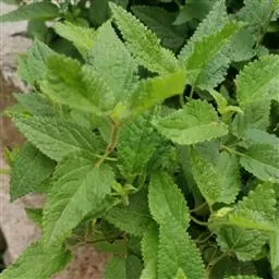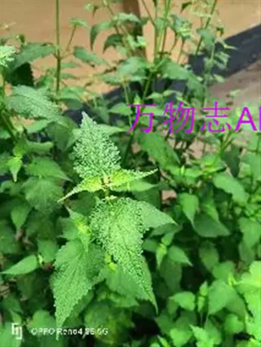 本品茎略呈方柱形,多分枝,枝条稍曲折,长30~1500px,直径0.2~17.5px;表面被柔毛:质脆,易折断,断面中部有髓;老茎类圆柱形,直径1~30px,被灰褐色栓皮。叶对生,皱缩成团,展平后叶片呈卵形或椭圆形,长4~225px,宽3~175px;两面均被灰白色绒毛;先端短尖或钝圆,基部楔形或钝圆,边缘具大小不规则的钝齿;叶柄细,长2~125px,被柔毛。气香特异,味微苦。