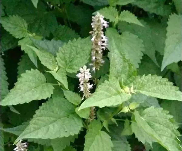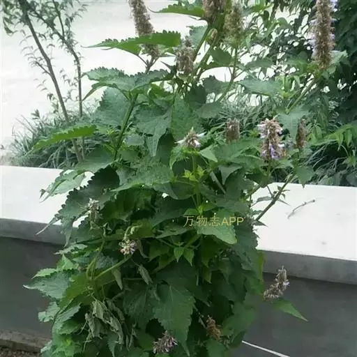 藿香,学名:Agastache rugosa (Fisch. et Mey.)O. Ktze.;又名:合香、苍告、山茴香等,是唇形目、唇形科、藿香属多年生草本植物,茎直立,高0.5~1.5m,四棱形,粗达7~8mm,叶心状卵形至长圆状披针形,花冠淡紫蓝色,长约8mm,成熟小坚果卵状长圆形,长约1.8mm,宽约1.1mm,花期6~9月,果期9~11月。