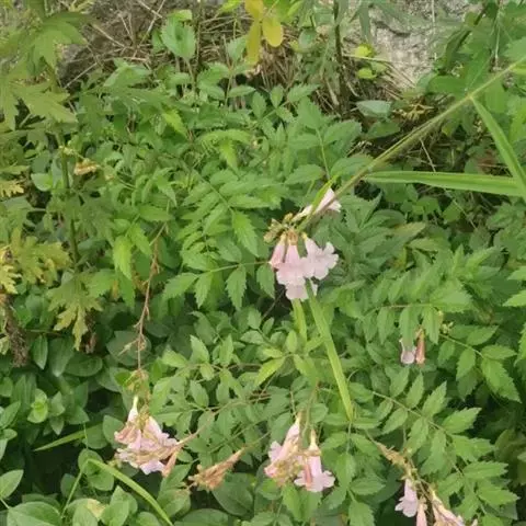 厚萼凌霄 Seem.)是紫葳科凌霄属植物,藤本,具气生根,长达10米。小叶9-11枚,…