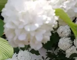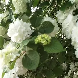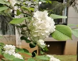 绣球荚蒾,五福花科荚蒾属落叶灌木,高可达3米,树冠球形;幼枝有垢屑状星状毛,老枝粗壮,具皮孔,…