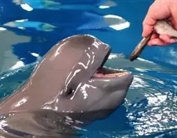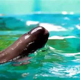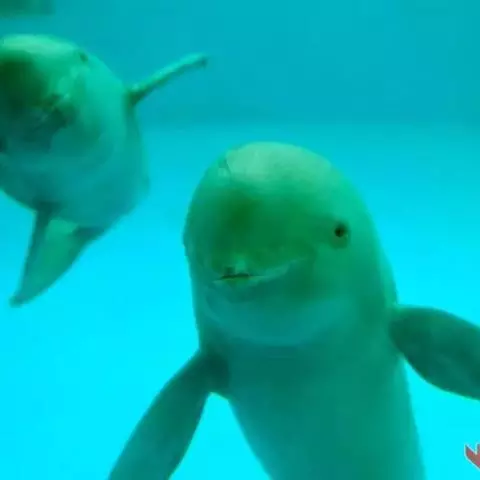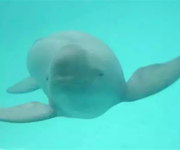 分娩之前10天左右,雌豚的呼吸频率逐日增高,食量渐减。到分娩之前5天时乳裂、生殖裂逐渐涨大,张开,乳头外突。游泳时常停止于水面,身体左右晃动,好象失去平衡一样。分娩开始前约25小时,外阴部进一步张开,阴道口有乳白色液体流出。分娩时阴道口叉开,每隔3分钟左右上下急游、翻滚一次,大约持续2一3分钟后缓慢游动,间歇3分钟后再次急游。每次急游时,雌豚便开始用力,这样幼仔就可以产出来一点,但一松劲的时候,仔豚就又缩进去了。一直到一次间歇之后,雌豚突然持调续用力,才将胎儿整体娩出,幼仔马上奋力向上游动,雌豚则腹面朝上,身体朝与幼仔相反的方向游动,拉断脐带。幼仔顺势冲出水面,呼吸空气。整个分娩过程大约历时约160分钟左右。