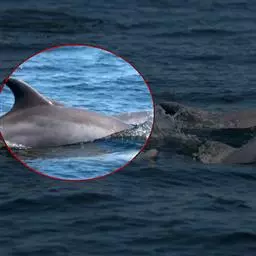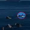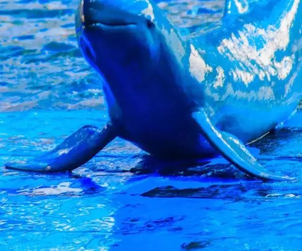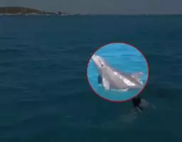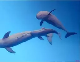 真海豚,身体细而流线型。体色十分复杂而独特,通常十字交叉型,黄褐色在前灰色在后,背面黑色向下延伸,…