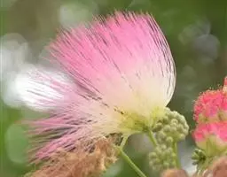 朱缨花,豆科朱缨花属的多年生木本植物,枝条扩展,小枝褐色;叶片呈卵状披针形;头状花序腋生,…