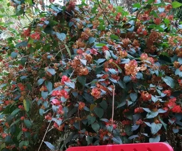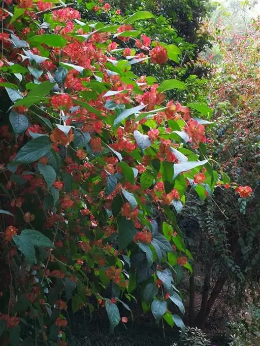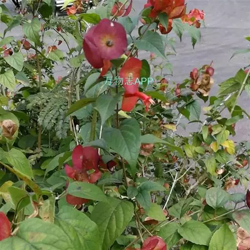 冬红( Holmskioldia sanguinea Retz. )为马鞭草科( Verbenaceae )冬红属( Holmskioldia )植物,又名阳伞花、帽子花,从冬红这个名字的表面字义来看,说明它的花在冬季依然能开放出绚丽的红色。冬红花顶生,花萼伞形,花冠喇叭形,橙红色,盛开时极为鲜艳夺目。它的枝条伸长具蔓性,可修剪成灌木。冬季忌潮湿,干旱有利开花,花后进行强剪,促使其萌发新枝。性喜高温,生长适温 23—3 2 ℃ , 适用于花架、花廊或盆栽。冬红在热带地区,用于园林绿化,诱引于花架或墙壁上。亚热带、温带地区可作温室盆栽。