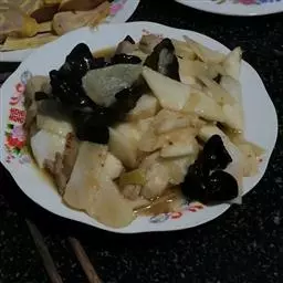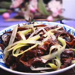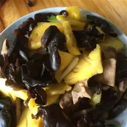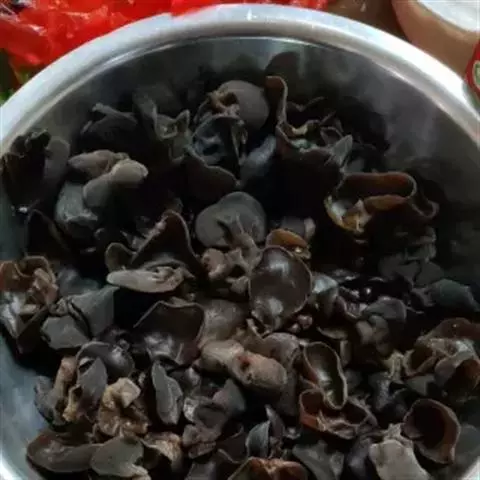 西芹,木耳 ,大葱一根, 蒜, 青辣椒,盐,黑胡椒适量, 八角, 甜鸡酱10ml ,油3ml.