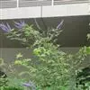 它的既适宜作深绿色植物的前景,也适合作草本花卉的背景,特别是在自然式园林中种植于林缘或花境是最合适不过了。水果蓝与众不同的是它奇特的叶色。水果蓝的萌蘖力很强,可反复修剪,所以也可用作规则式园林的矮绿篱。不管如何运用,它都丰富了园林的色彩,为庭院带来一抹靓丽的蓝色。