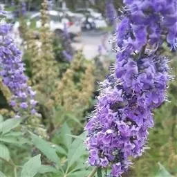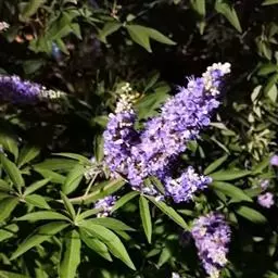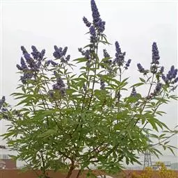 春季枝头悬挂淡紫色小花,很多也很漂亮,花期1个月左右。叶片全年呈现出淡淡的蓝灰色,远远望去与其他植物形成鲜明的对照。