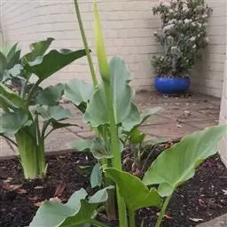 花序腋生,基部具苞片4-5(-6)枚;苞片卵形,长5毫米,上部的渐大,纵脉多数;花序柄长0.8-1.8(-2)厘米;佛焰苞卵状,绿色,长8毫米,展开宽10(-15)毫米,锐尖;肉穗花序短,椭圆形至近圆球形,淡绿色、淡黄色,长7-8(-11)毫米,粗5-6(-10)毫米,花序梗长3-5(-8)毫米。