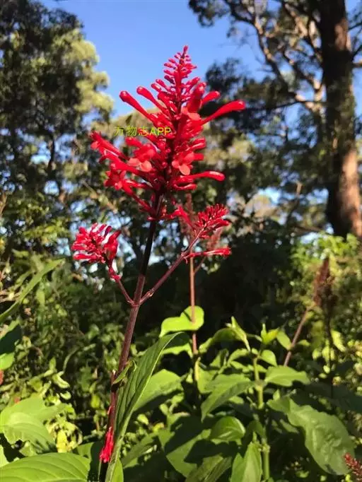 火焰花(学名:Phlogacanthus curviflorus (Wall.) Nees)是爵床科,火焰花属灌木,高可达3米。叶椭圆形至矩圆形,顶端尖至渐尖,基部宽楔形,叶片上面密生小点状钟乳体,光滑无毛,背面被微毛,聚伞圆锥花序穗状,顶生,花梗密被短绒毛;苞片和小苞片微小;裂片三角状披针形,密生微毛;花冠紫红色,花药背着生,蒴果长,圆柱形,有种子。花期4-5月。
