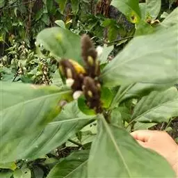 灌木,高达3米。叶椭圆形至矩圆形,长12-30厘米,宽9-15厘米,顶端尖至渐尖,基部宽楔形,下延,具柄,柄长1.5-5厘米,叶片上面密生小点状钟乳体,光滑无毛,背面被微毛,脉上毛较密而明显,侧脉12-17对。